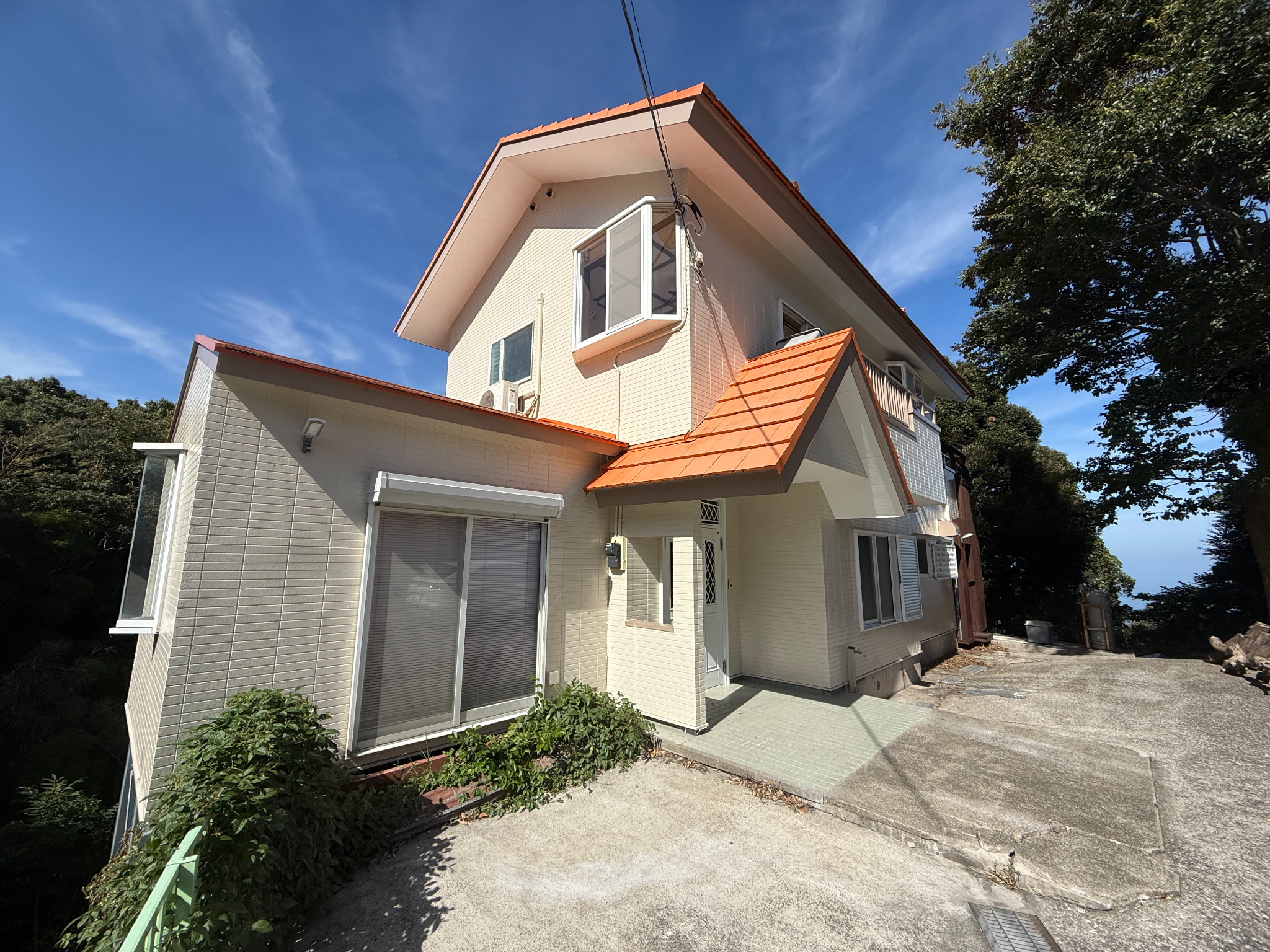 【 海眺望 一戸建て 】海眺望、角地、広いウッドデッキ付き