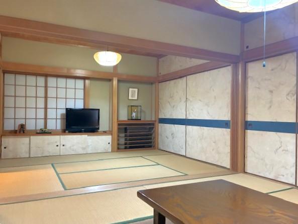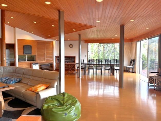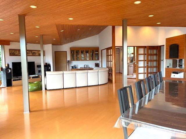 【 温泉付き 一戸建て 】約1000坪の敷地、広々したリビングダイニング、温泉権付、平坦な芝庭